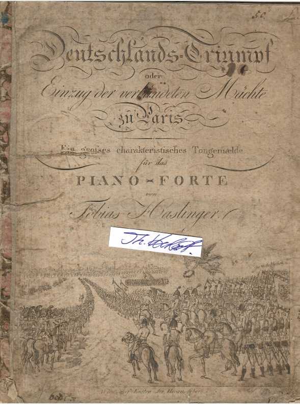 TOBIAS HASLINGER (1787-1842) österreichischer Musikverleger und Komponist, es wurden Werke von Beethoven, Franz Schubert (Liederzyklus Winterreise, komponiert 1827, von Haslinger veröffentlicht im Jahr 1828), Louis Spohr, Johann Nepomuk Hummel, Joseph Mayseder, Ignaz Moscheles, Carl Maria von Weber, Mozart, Carl Czerny, Muzio Clementi sowie das Gesamtwerk von Johann Strauss (Vater) verlegt. 1821 widmete Ludwig van Beethoven seinem Verleger den musikalischen Scherz O Tobias! WoO (Werk ohne Opus) 182, einen Kanon für drei Stimmen. Tobias Haslinger war Cellist und auch als Komponist tätig.