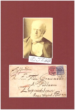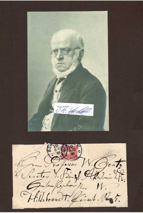 (dito zum gleichen Preis : E.Briefumschlag (auf schwarzem Karton mit Porträtdruck, ca. 29,7 x 21 cm, Einrisse, montiert) an den Malerkollegen KARL WILHELM GENTZ (1822-90) BEILAGEN : Original-Rechnung eines Kollegen, kleiner Eigentumsnachweis eines Neffen von Gentz)
