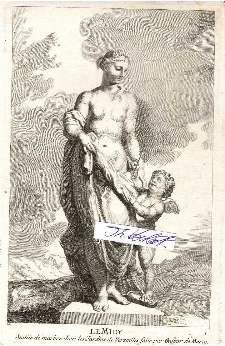 2) LE MIDY Statiee de marbre dans Les Jardins de Versailles faite par Gaspar de Marcy (siehe Abbildung II)