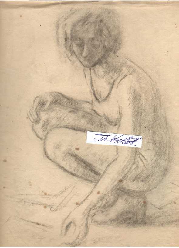 GROSSE ORIGINAL-KOHLEZEICHNUNG (H 30,8 x B 24 cm, Bütten/Teichenblockpapier) - unsigniert