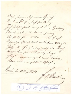 Eigenhändiges Albumblatt (1 S. 8°, 10 Zeilen in Tinte) mit Ort, Datum, Unterschrift signiert Berlin, den 5. April 1881