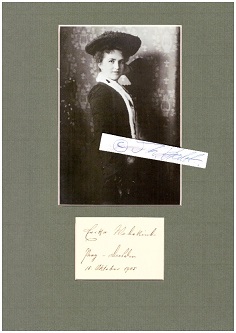 Visitkarte (blanko) in Tinte mit Ort und Datum eigenhändig signiert Prag... 15. Oktober 1905 - mit s/w-Reprofoto unter mattgrünes Passepartout (4 to) gerahmt