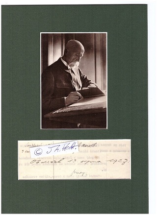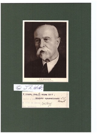 (dito : Dokumentenschluß von 1927, von T.G. Masaryk und einem weiteren Politiker mit Ort und Datum eigenhändig signiert - mit Repro-Fotopostkarte unter matt-dunkelgrünes Passepartout (4°) gerahmt, siehe Abbildungen ! je Euro 280,-)