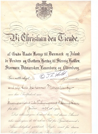 Große Original-Urkunde (1 S. gr. folio Doppelblatt, mit Wappen am Kopf) "Vi Christian den Tiende..." mit Ort, Datum, eigenhändiger Unterschrift in Tinte signiert mit papiergedecktem Staatssiegel und Gegenzeichnung eines Ministers