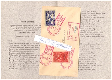 BEILAGEN : a) Original-Einschreiben-Briefumschlag dazu mit seltenen roten Lindbergh-Sonderstempeln und Briefmarke mit Lindberg-Überdruck (siehe Abbildung II)