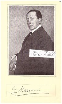 GUGLIEMO MARCONI (1874-1937) seit 1924 1. Marchese von Marconi , Professor Dr., italienischer Radiopionier und Unternehmensgründer der Wireless Telegraph & Signal Company, die später zur Marconi Company wurde, 1909 Nobelpreis für Physik